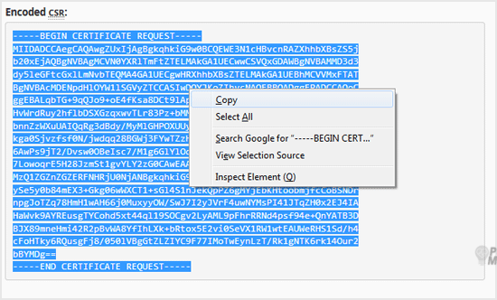 Copy the code from-----BEGIN CERTIFICATE REQUEST-----