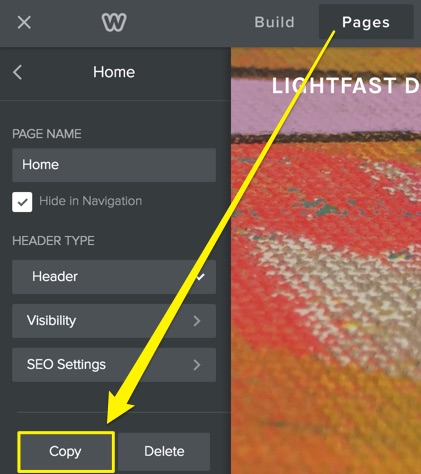 A page can be copied and used as the basis for a new page. To do this, just select the Pages tab and select the page you want to copy from your list of pages in the sidebar, then use the Copy button to generate a copy of the page.