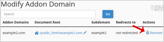 3. Locate the addon domain under Modify Addon Domain and then click on the Remove link.