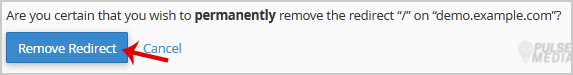 4. For confirmation, click on the Remove Redirect button once more.