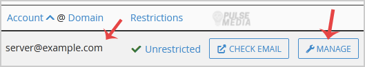 4. If your email address is server@example.com, you should see a Manage option on the right side of your email address. Click on Manage.