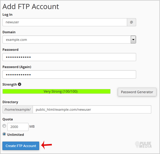 Now you can access your FTP Account by using your newly-created FTP account like: