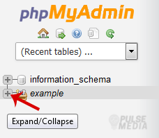 3. In the left side-bar, Click on the expand button to expand the database like "example".