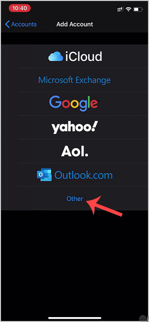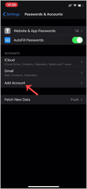 5. Tap on Add Mail Account.