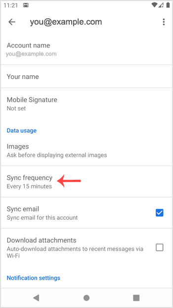 4. Tap on the Sync frequency option.