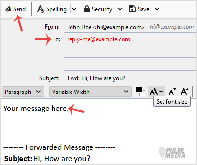 3. Type your message in the message box. Do not make any modifications to the email title and the rest of the text. Then click on Send.