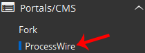 4. On the left side of your screen, you should locate the Portal/CMS category. Click on it and then click on the ProcessWire link that will appear.