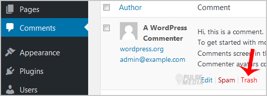 5. Choose Comments from the dashboard, and then the Trash option will appear. Now click it.