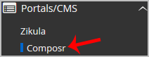 4. On the left side of your screen, you should locate the Portal/CMS category. Click on it and then click on the Composr link that will appear.