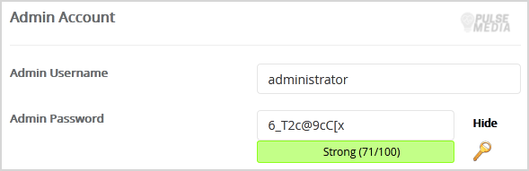 - Admin Username: Your new Pimcore username (for security reason do not use the Administrator or the Admin username.)