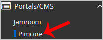 4. On the left side of your screen, you should locate the Portal/CMS category. Click on it and then click on the Pimcore link that will appear.