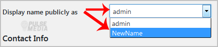 4. In the option Display name publicly as, choose your newly added nickname from the drop-down menu.