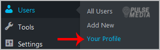 2. Under the dashboard menu, hover your mouse over Users and then click on Your Profile.